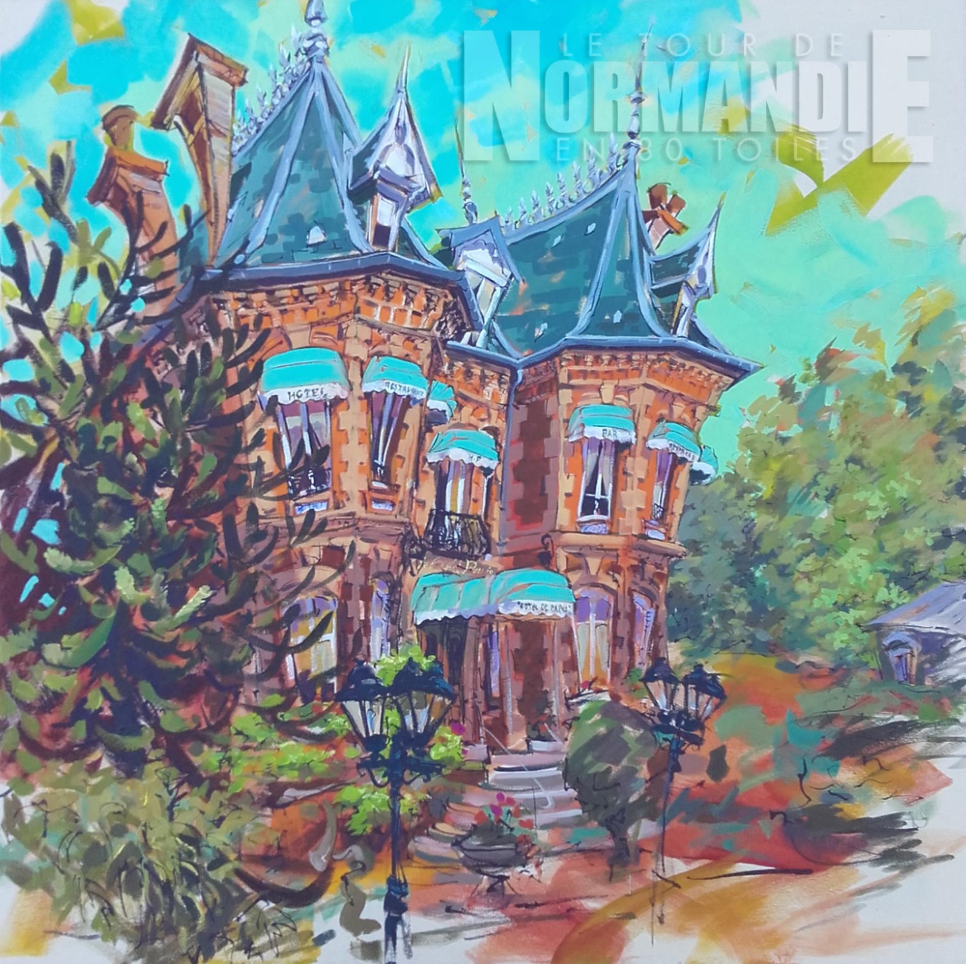 Beyond the large white gates stands the Hôtel de Paris. It is an authentic 1900 villa as there still are in Normandy, with its carved roof, its red brick walls.